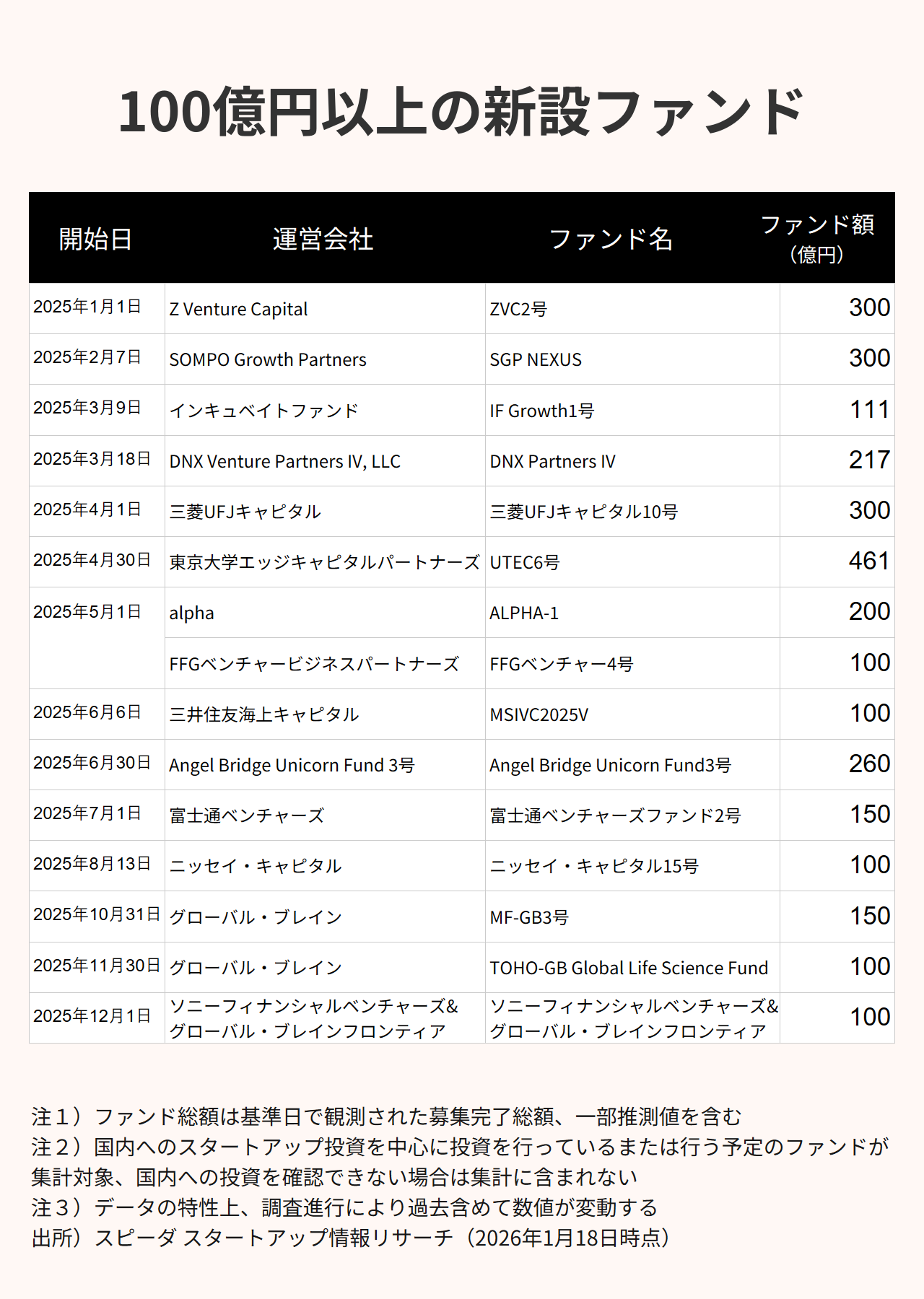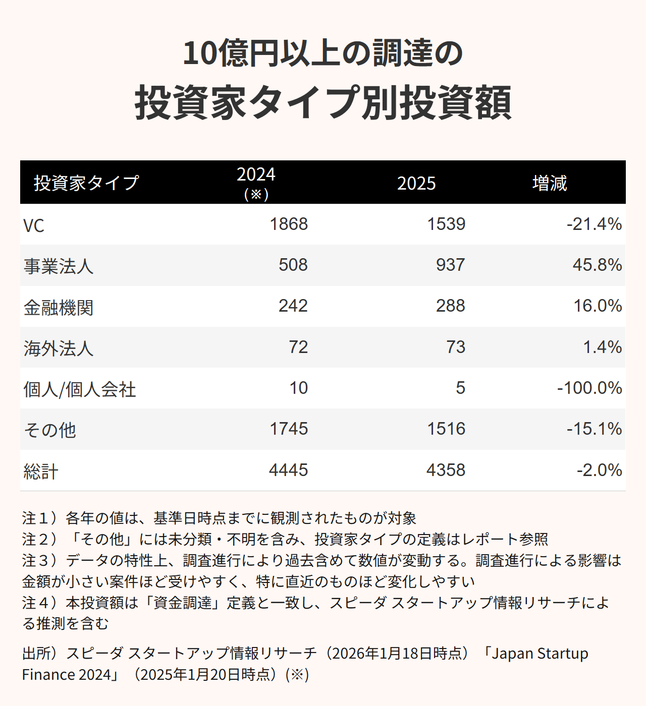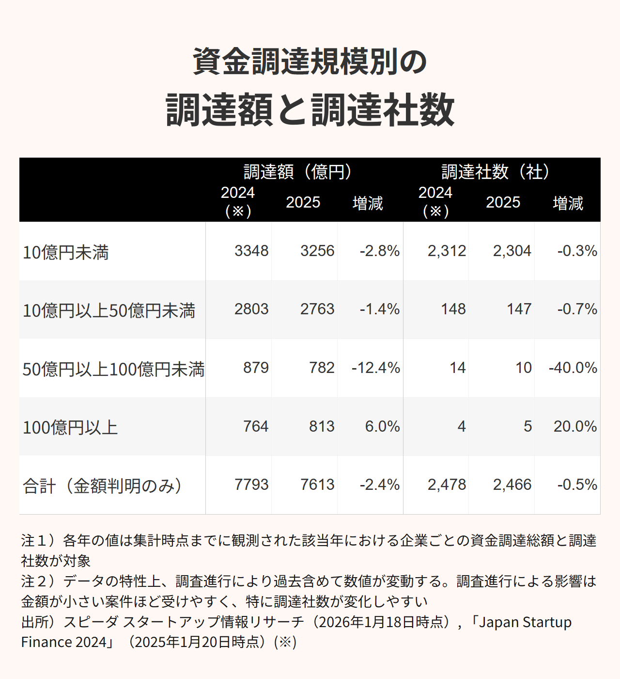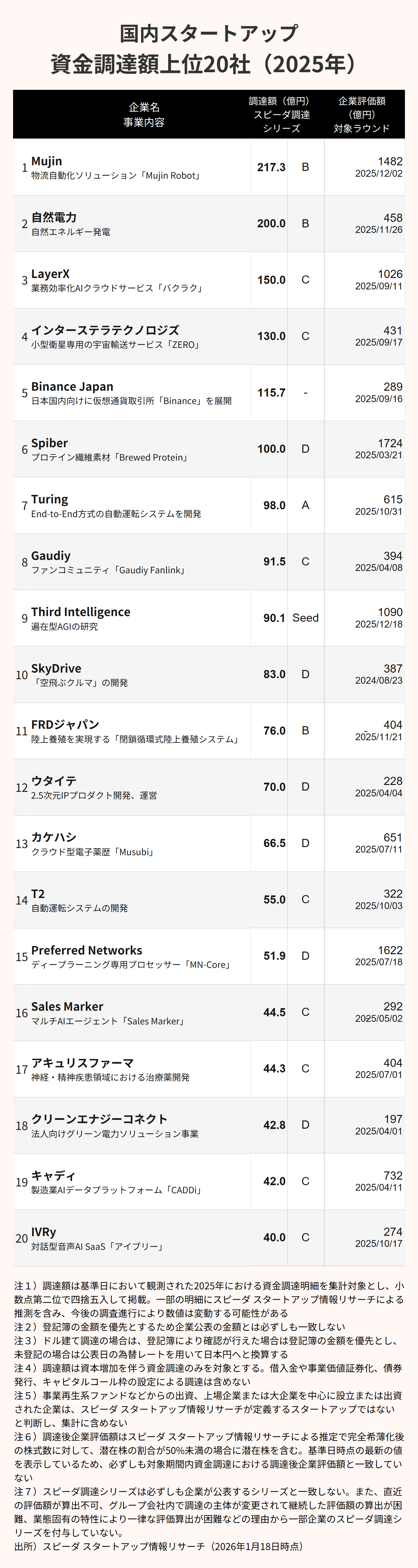 (※1)スピーダ調達シリーズは1月27日(火)公開予定の『Japan Startup Finance 2025』レポートに詳細な数値が公表されています。
