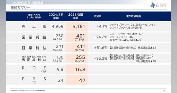 【QAあり】インターネットインフィニティー、営業利益は前年同期比+271.3%と大幅成長 利益率改善で各段階二桁増益見込み