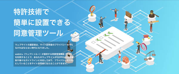 プライバシー関連規制に対して必要な対応を自動化するサービス法人向け同意管理ツール「Webtru(ウェブトゥルー)」の提供。